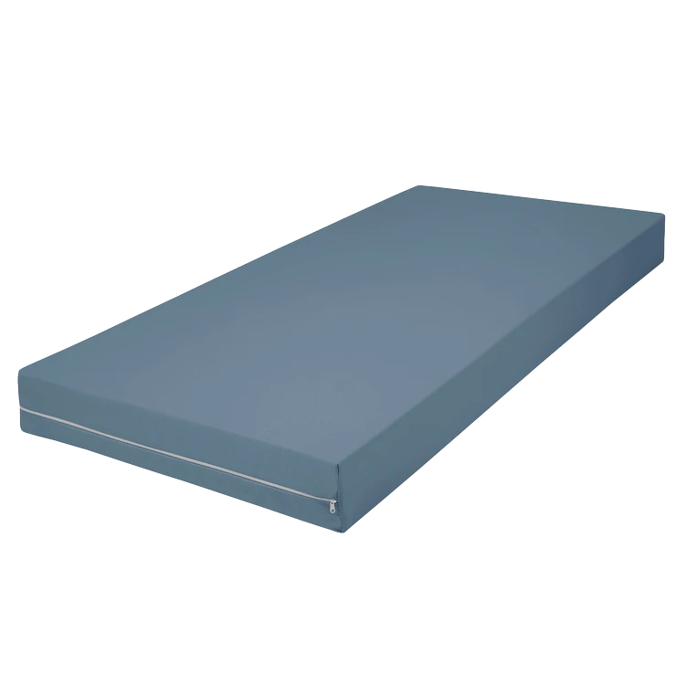 Matelas avec coeur en mousse Haute Résilience (HR). Densité 34 kg/m3. Confort médium 3,4 kPa, classement feu M4. Housse en textile 100% Polyester dont 30% recyclé. ZIP sur 2 côtés. Lavable en machine à 90°C. Poids 175 gr/m2. Anti-acarien et antibactérien. Classement feu M1 : norme NF EN 597 partie 1 et 2 + D1-90 classe C. Fabriqué en France. Garantie 5 ans contre tout risque d’affaissement prématuré.